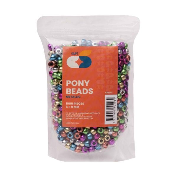 Pony Beads 6 x 9 mm, 1000 Pieces, Metallic