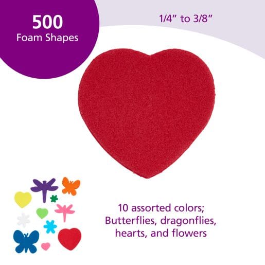 Flowers Hearts & Bug Foam Shapes, 500 Pieces