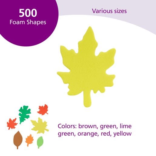 Colorful Foam Leaf Shapes, 500 Pieces
