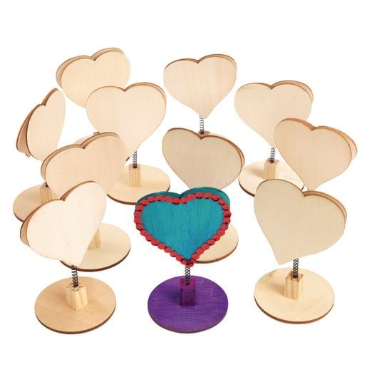 This sweet heart-shaped Note Holder has a fun twist – it bobbles! You get a set of 12 wooden bobble heart note holders. Each note holder measures 11,5 cm high and 7,5 cm wide. These noteholders are ready for all types of designs. Decorate with crayons, markers, paint, glitter or glue. And of course, add a note or a photo once decorated! An ideal craft for Valentine's Day, Mother's Day, Father's Day, or even Grandparent's Day. This project makes a sweet, whimsical gift that family and friends will treasure. Colorations bobble note holders are made of real unfinished wood. The noteholders have a strong spring that wiggles back and forth. All Colorations brand products are non-toxic and safe for children.