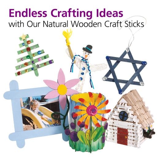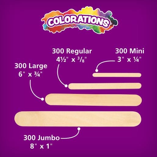 A great value! Our huge, value-priced set of quality craft sticks are ideal for all your crafting needs! Set of 1,200 pieces includes 300 of each size: jumbo, large, regular and mini. Natural.