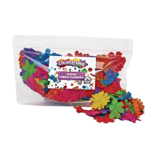 Colorations Fabric Flowers are perfect for your next arts and crafts project! You get a set of 300 real 100% polyester fabric flowers with a resealable storage bag. Flowers measure approximately 4,5 cm in diameter. Each pack of fabric flowers includes 5 unique flower shapes and vibrant colors of the rainbow ranging from red, orange, green, blue, purple, and pink. Use fabric flowers on a variety of projects such as scrapbooks, picture frames, construction paper, or wooden crafts. Use in the classroom, summer camp, or at home! Fabric flowers are easy to use, just add glue and stick to create fun designs. Children will love crafting for hours to create all kinds of projects with these fun shapes and colors. All Colorations brand products are non-toxic and safe for children.