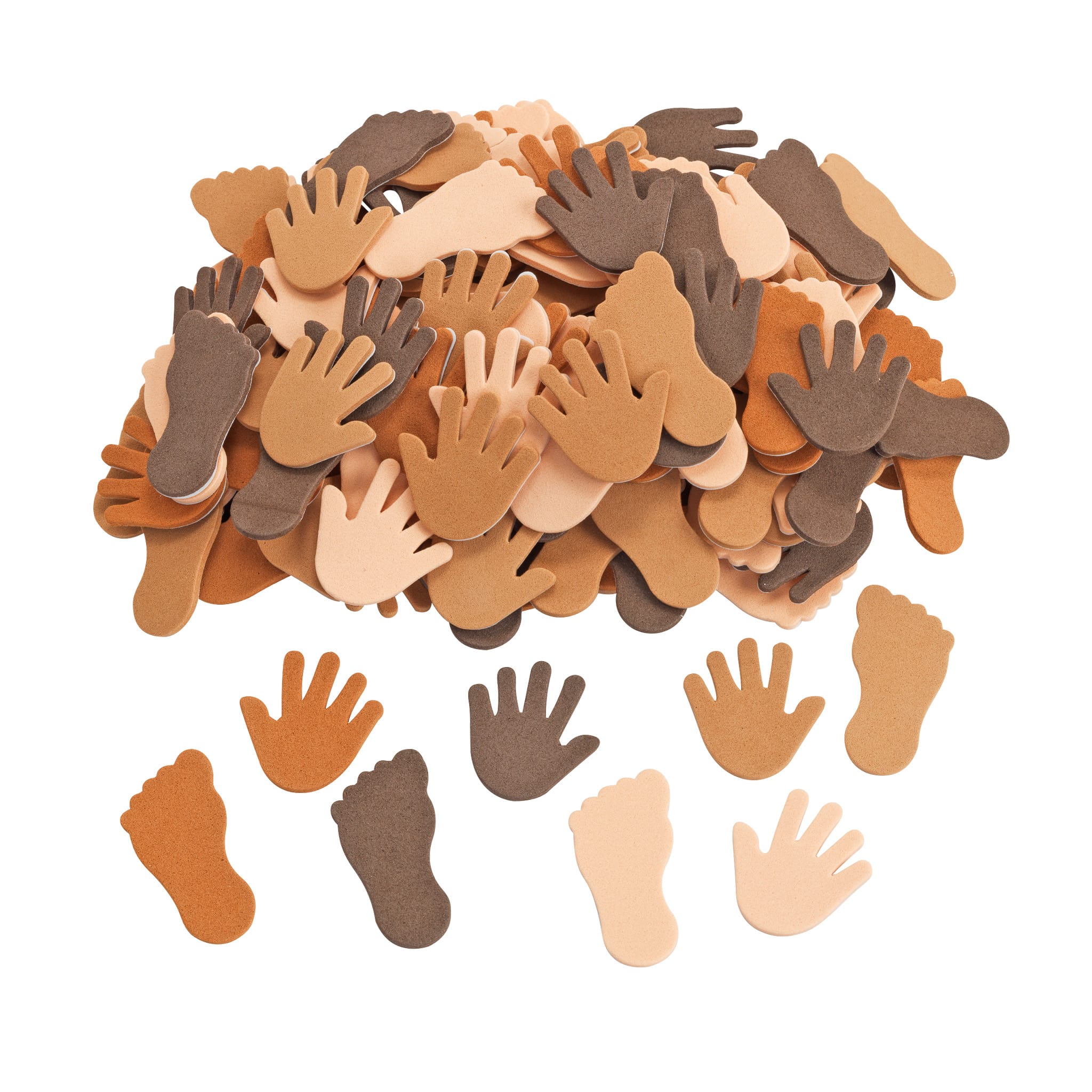 - QUALITY AND DURABILITY: Foam hands and feet are made with a strong, self-adhesive backing. Peel the backing and attach them to flat surfaces such as paper, cardstock, poster board, and more! No glue or tape needed!