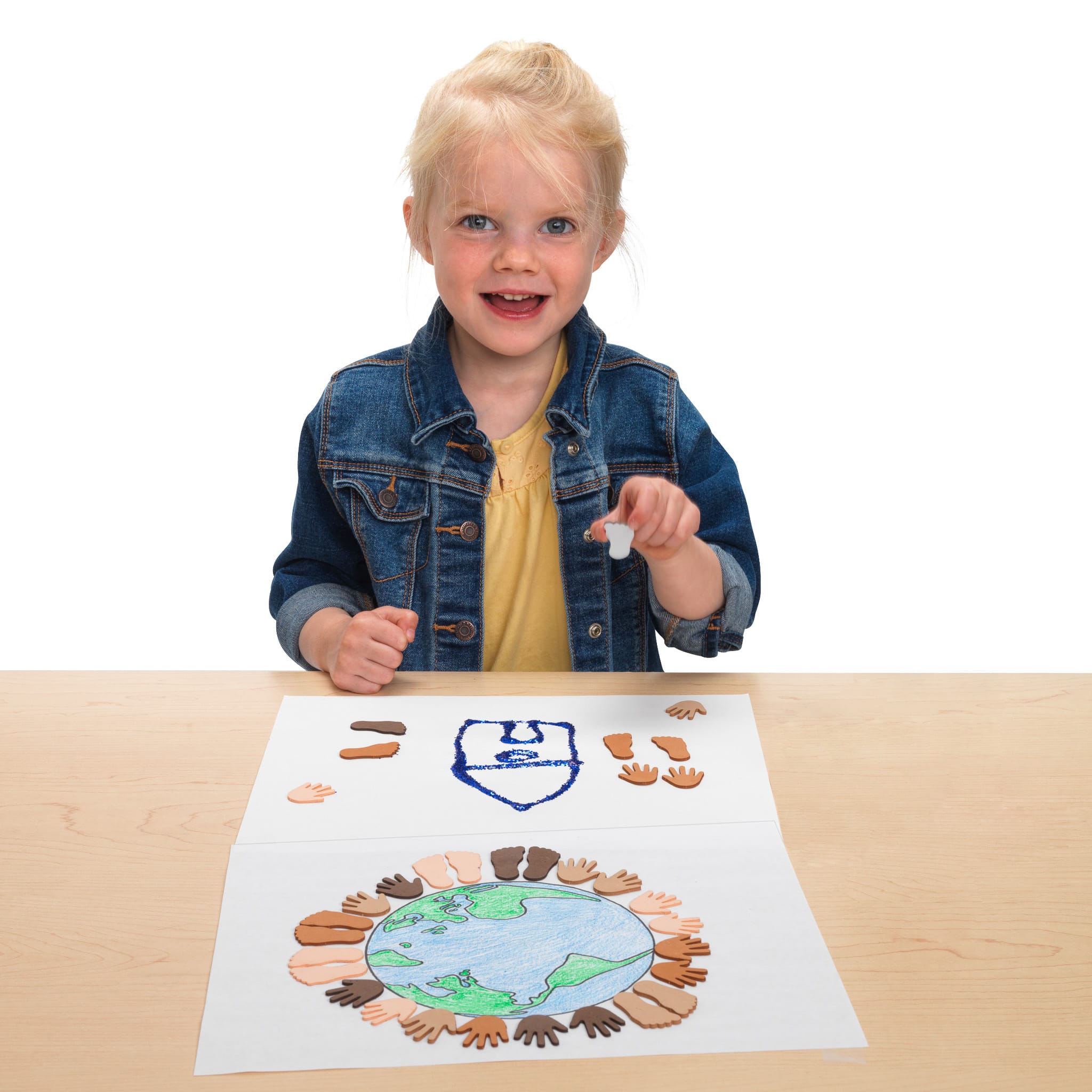 Celebrate diversity with fun foam stickers! This set of 200 self-adhesive hands & feet are great to use for a variety of craft activities. Use them on flat surfaces with your child or students as they create and learn. The foam bits are sized perfectly for little hands to grasp, and their soft texture makes them fun to touch and use to create artwork. Perfect for scrapbooks, greeting cards, posters, signs, and more!
