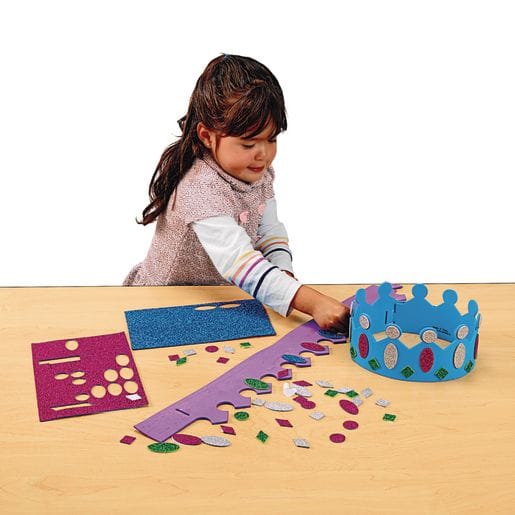 Whomever you buy this kit for will love the dazzling crowns fit for royalty! They are great to make/create for children's gatherings such as birthday parties. Ideal for holiday and summer crafting. All the self adhesive decorating parts are included in the Kit!