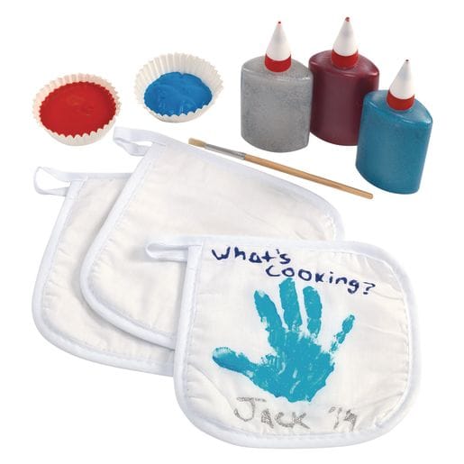 Colorations Pot Holders are a great DIY craft keepsake for kids. You get a set of 12 white pot holders. Each pot holder measures 19,5 cm square. These blank white pot holders are the perfect blank canvas for your next creation. Personalize with fabric markers, fabric paint, and permanent markers. Embellish with rick rack, ribbon, or felt shapes. This is the perfect craft for the classroom, art class, summer camps, church groups, or birthday parties. Use for gifts, party favors, Mother's Day, Father's Day, or Christmas! A keepsake loved ones will cherish. Stitching is secure and there is even a loop for easy hanging. For decorational use only.