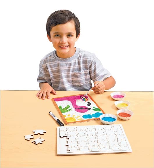 Treat the puzzle as a blank canvas. Use paint, crayons, pencils, or markers to draw and create your own puzzle, even add some glitter! Create your own picture or design!