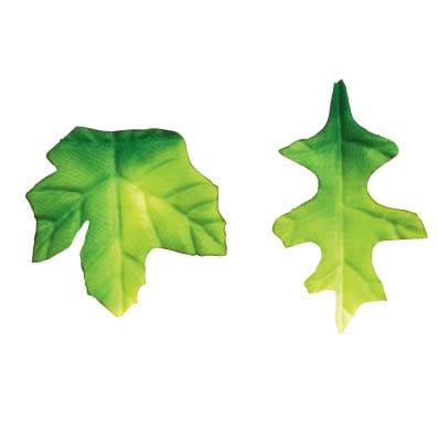Spring and Summer Leaves, set of 200. 100 maple leaves and 100 oak fabric leaves. Maple leaves are 6.5 cm x 6.5 cm. Oak leaves are 8 cm x 5 cm.