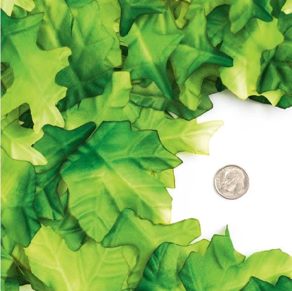 100% polyester. Leaves realistic looking with vibrant colours and veins clearly printed.