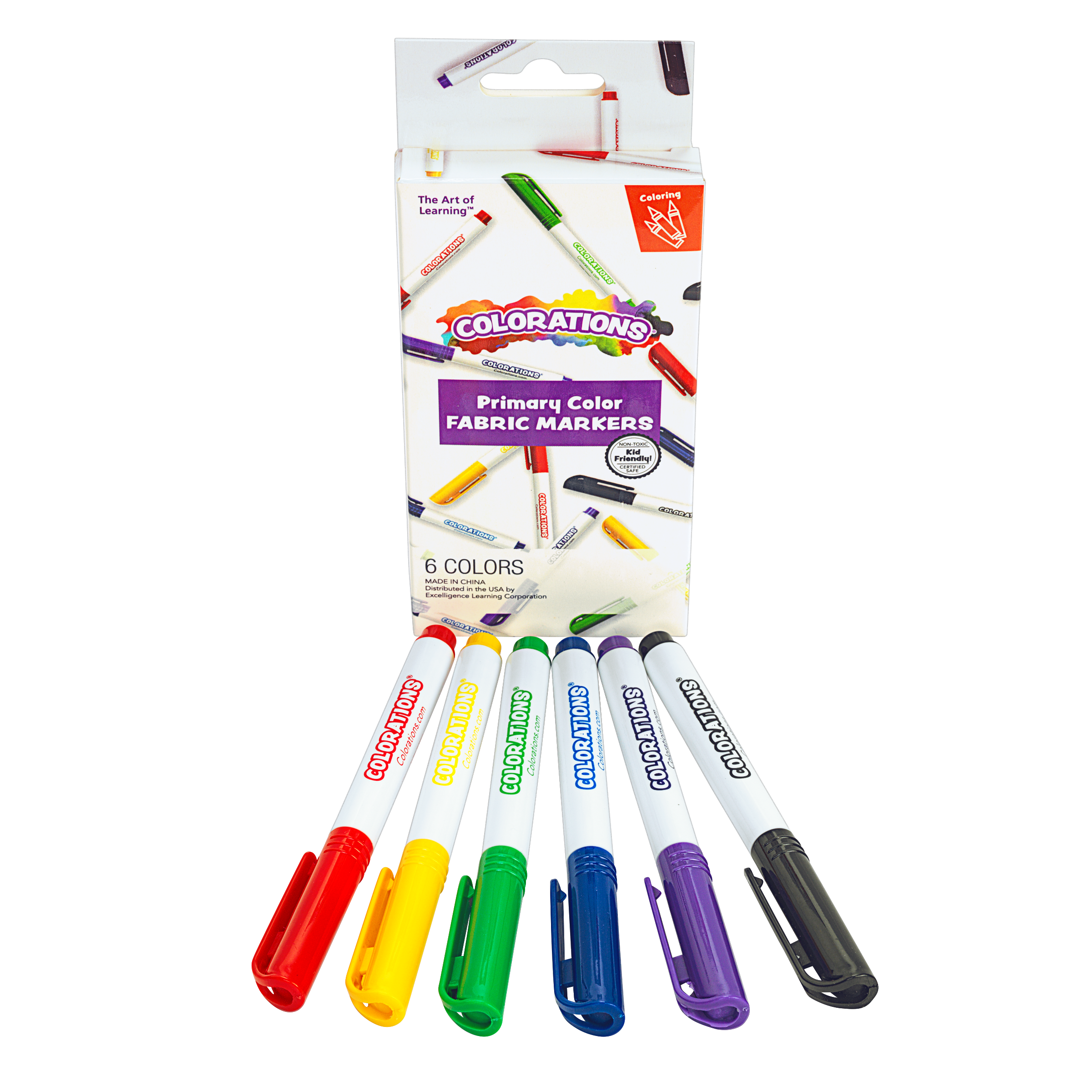 You get a set of 6 fabric markers; size is 13.5 cm L x 1 cm diameter. Vibrant colours include red, blue, yellow, purple, green, and black. Draw and colour on any canvas or cotton blend fabric and create and decorate your own design with these long-lasting colours. The ink colours easily making a permanent design easy to achieve.