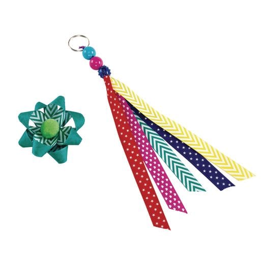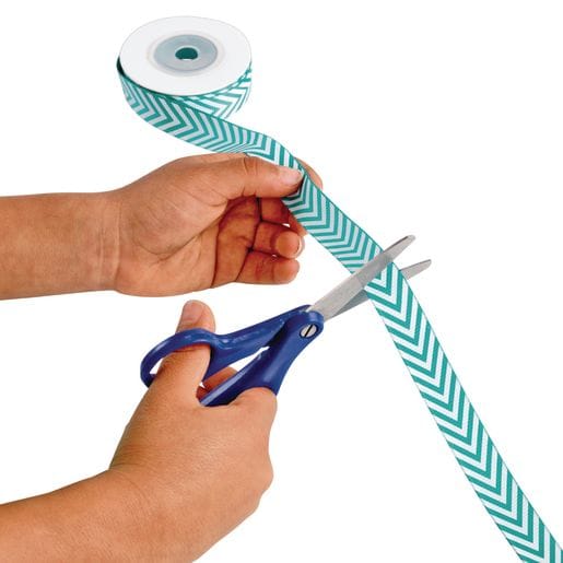 Each roll contains 7.5 m of quality grosgrain ribbon. Set includes: yellow with white chevron, turquoise with white chevron, pink with white hearts, blue with white stars, and red with white stars. Ribbon is washable; white print may fade with washing.