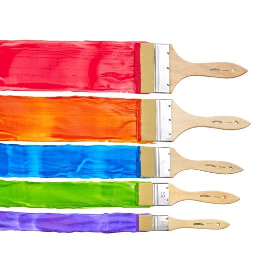 This set includes 5 flat brushes each with a different bristle width for small to big brush strokes. The brushes have a sturdy, durable construction perfect for indoor or outdoor creative painting projects. Brush widths included are 25 mm, 50 mm, 75 mm, 100 mm and 125 mm.