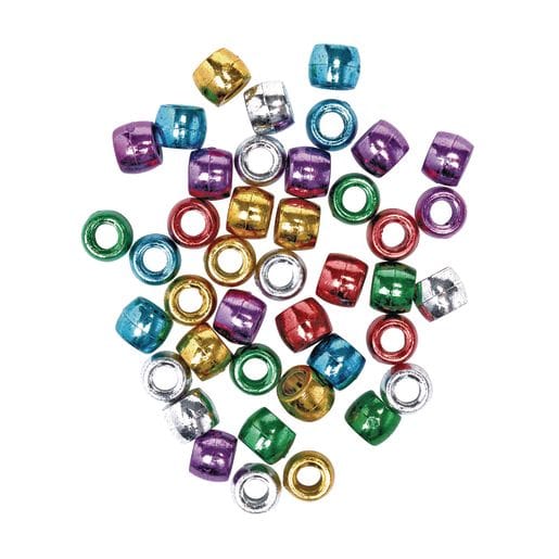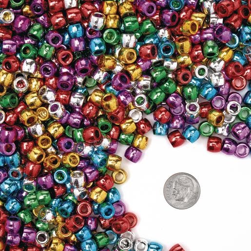 *WHAT YOU GET: 453,5 g (approximately 1800 beads) of shiny metallic colored pony beads. Colors: purple, gold, pink, silver, red, & green. Lacing hole is 0,5 cm. Beads come in plastic stand-up resealable bag for easy storage