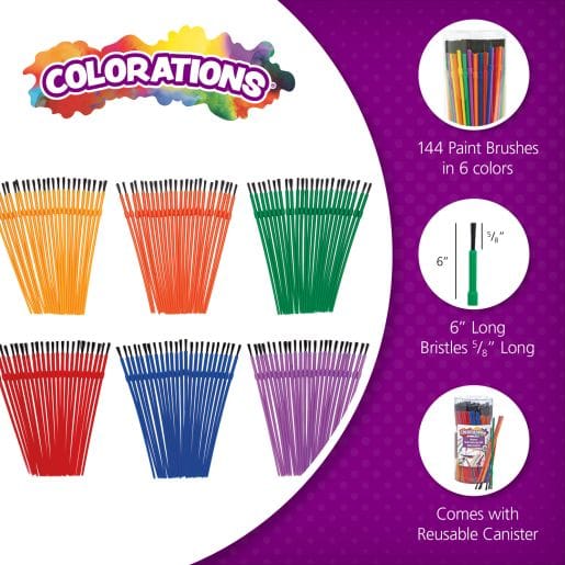 *PAINT BRUSHES: Set of 144 assorted paint brushes, 3 different widths. Bristles are 1,5 cm long. Brushes are 15 cm Long with assorted handle colors. *MULTIPLE PURPOSE & VERSATILITY: Watercolor, acrylic, pastel painting. Rock painting, classroom and groups.Value pack.