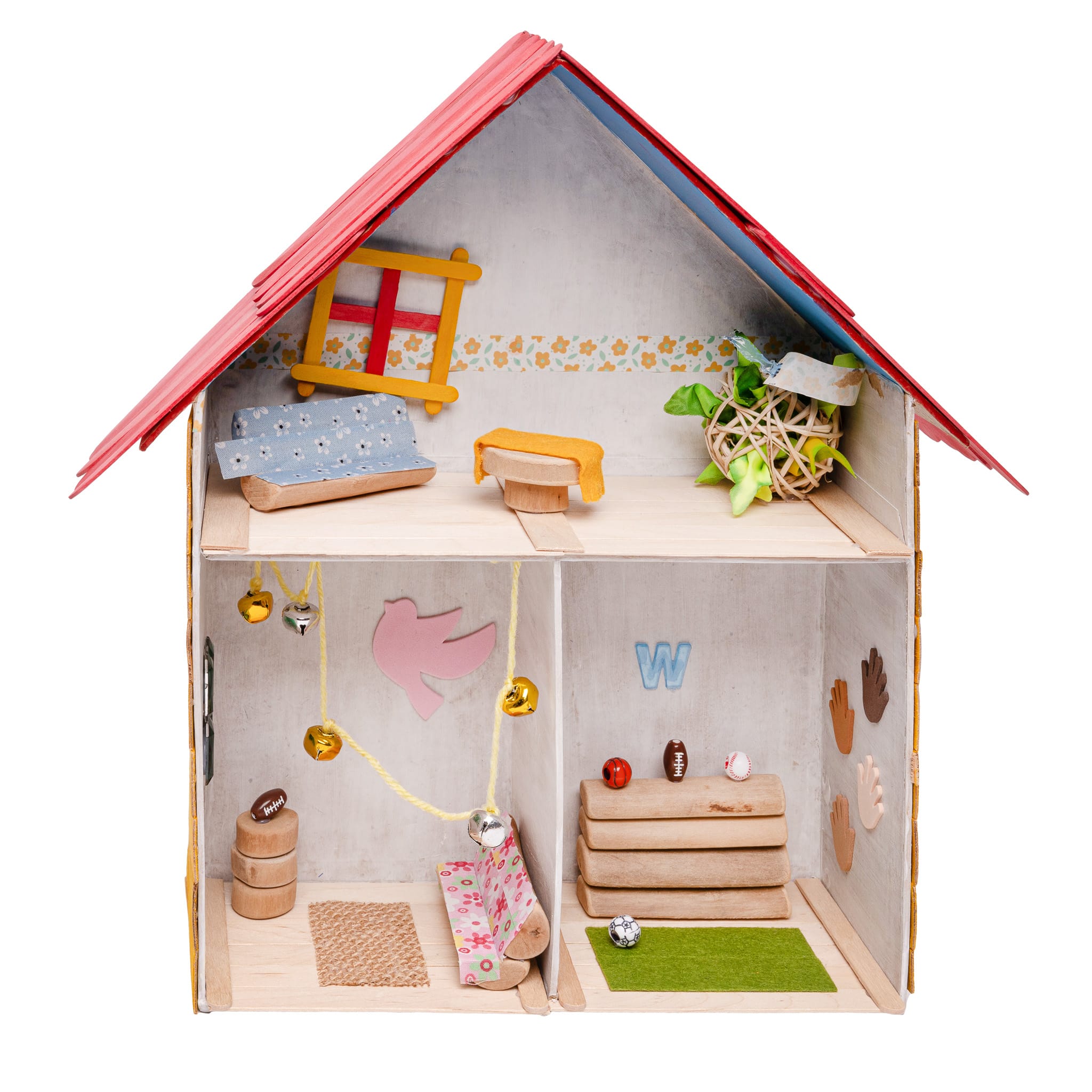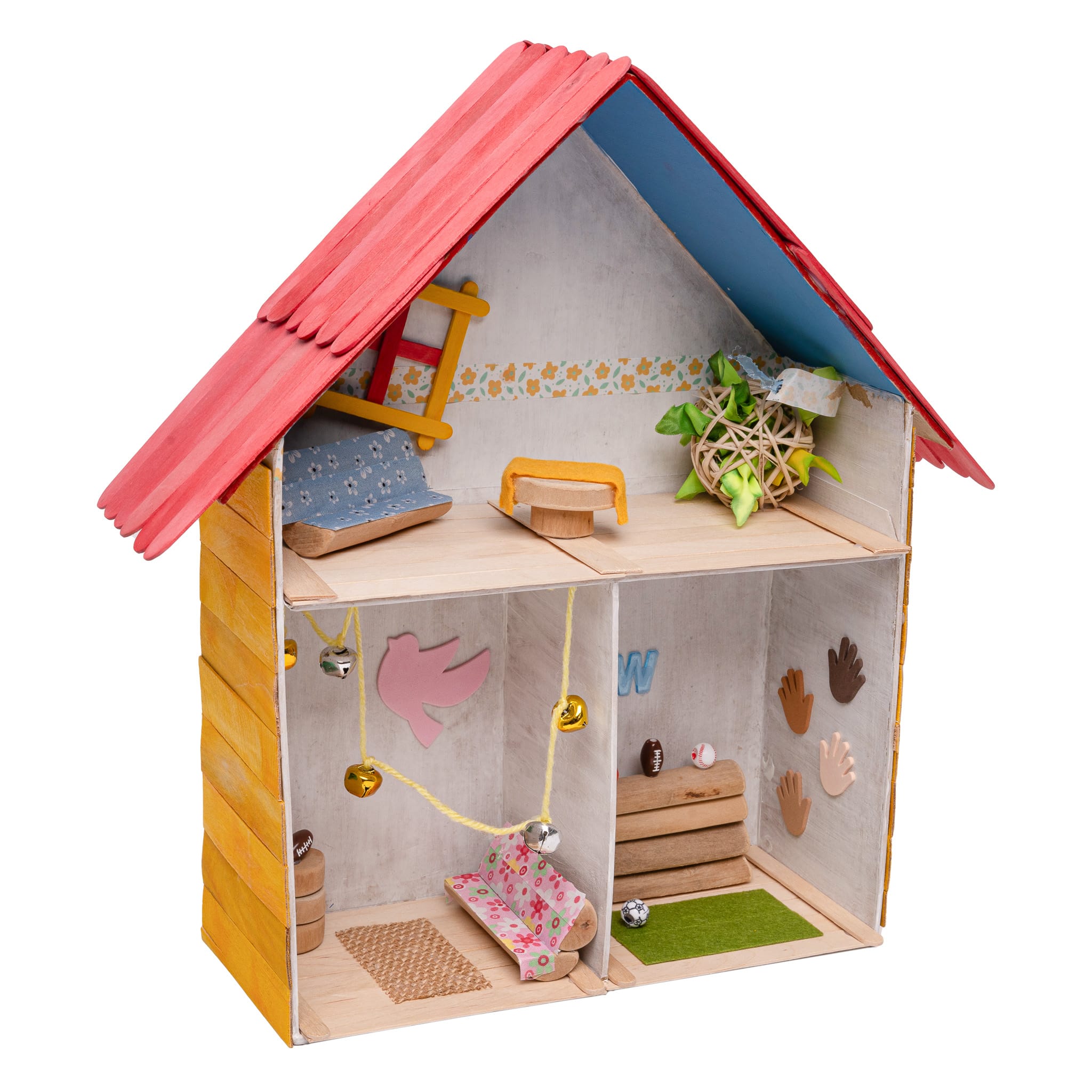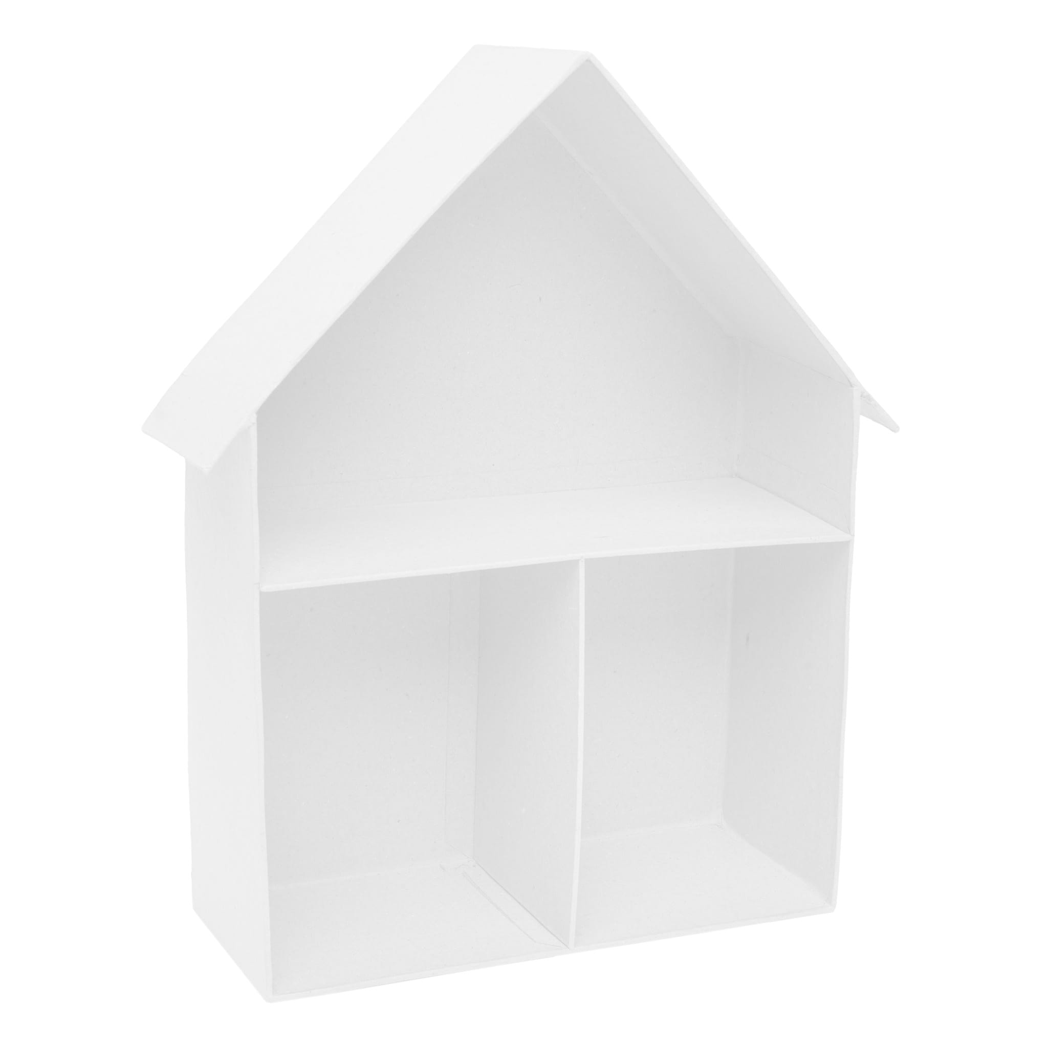 | This Papier-Mâché Doll House doubles as a chic house organizer, perfect for creative minds! Decorate with paint, paper, or stickers and use it to store small toys, art supplies, or as a decorative piece. Ideal for both playtime and home organization. Measurements: 26 w x 36 h x 10 d cm. Roof is 30.5 cm at the widest point. |