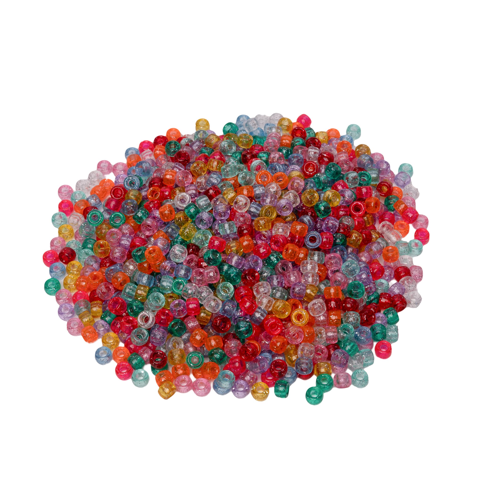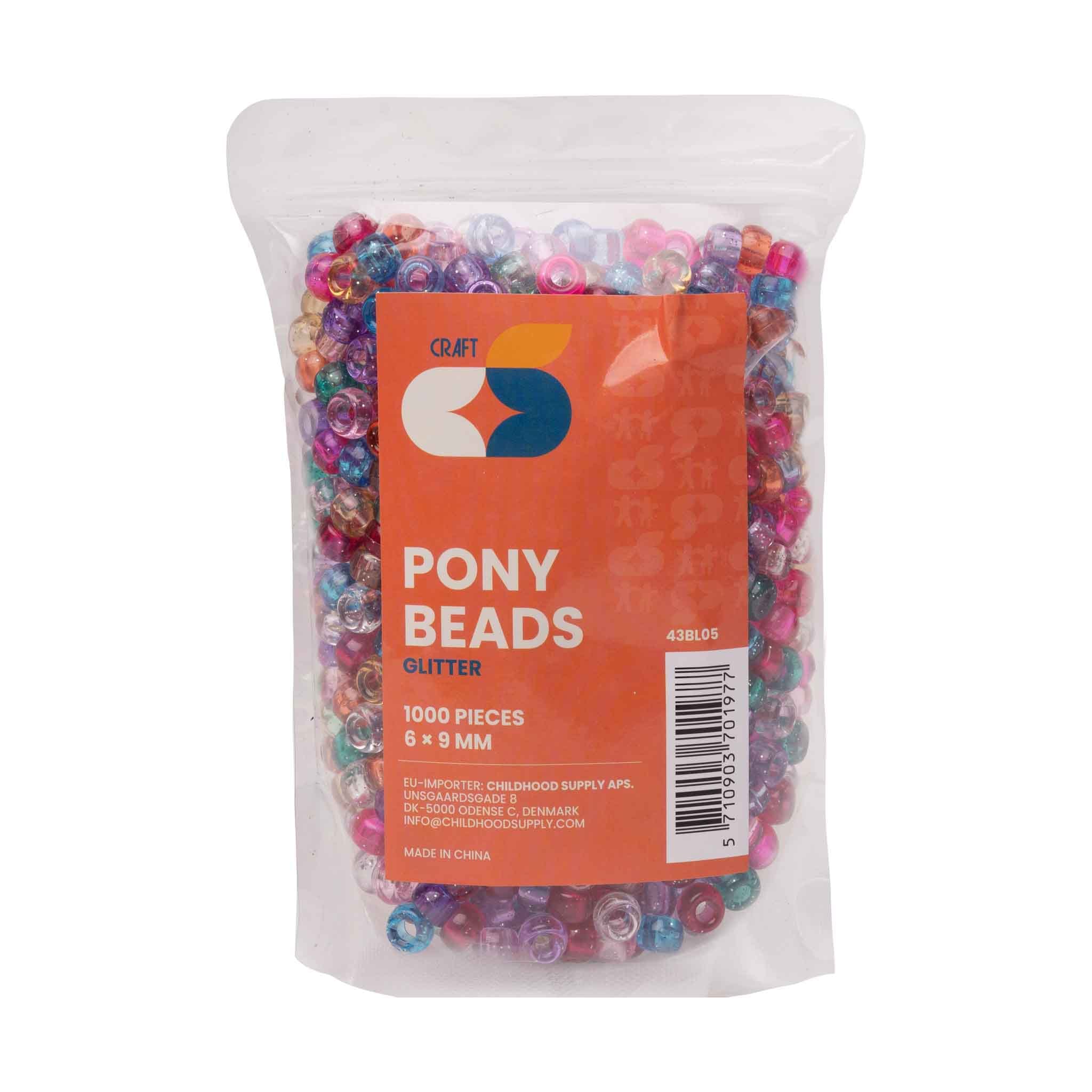 | This 1000-piece set of glitter pony beads (6 x 9 mm) is perfect for adding a touch of sparkle to children's craft projects. Great for making glittery bracelets, necklaces, or bead art, these shiny beads are fun and easy to work with. Their sparkling finish encourages kids to create dazzling accessories and imaginative designs. |