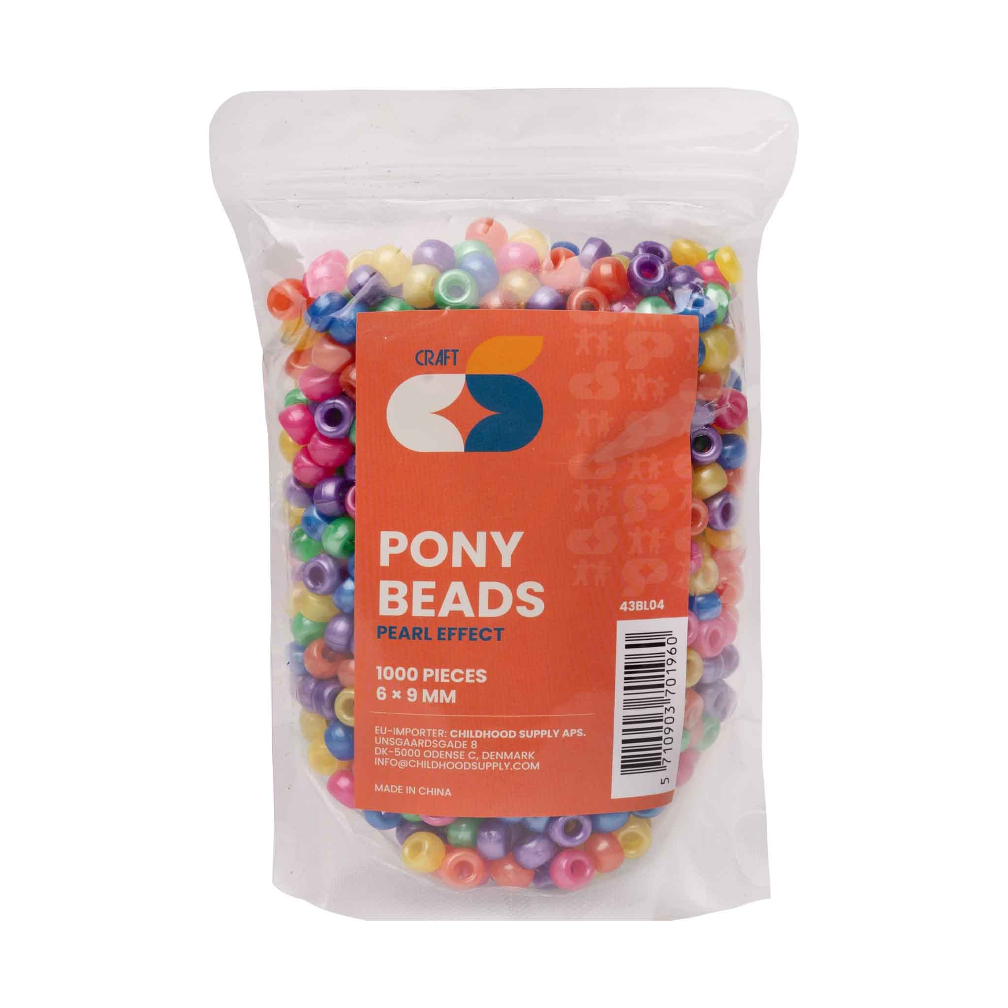 | Enhance children's craft projects with our 1000-piece set of pearl-effect pony beads (6 x 9 mm). These beads feature a glossy, pearl-like finish, adding elegance to bracelets, necklaces, and other handmade creations. Perfect for kids who love creating shiny, polished accessories, these beads inspire creativity and beauty in every design. |