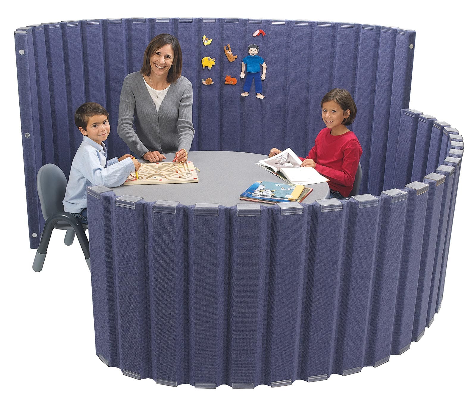 Amazingly sound absorbent flexible room dividers help create learning centers and separate space. Quiet Divider® with Sound Sponge® is lightweight and easy to maneuver and is hook and loop compatible. Glides are included for easy movement along bottom edge. Magnetic connectors easily join panels.