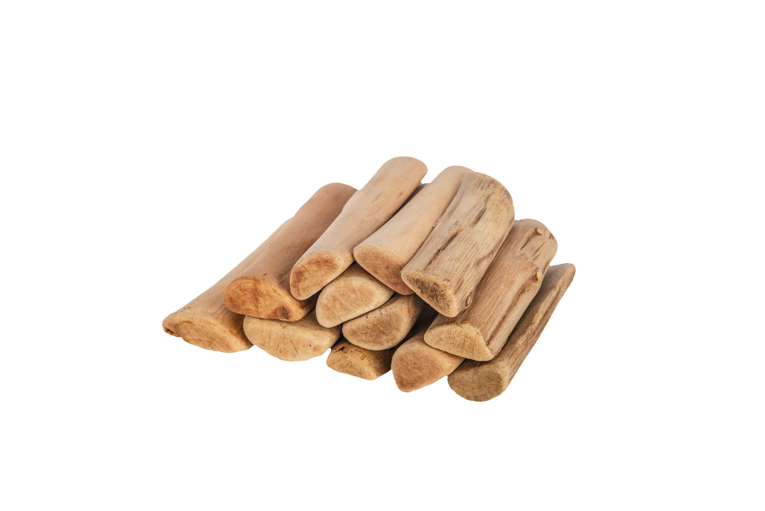 About 25 pieces of polished driftwood.