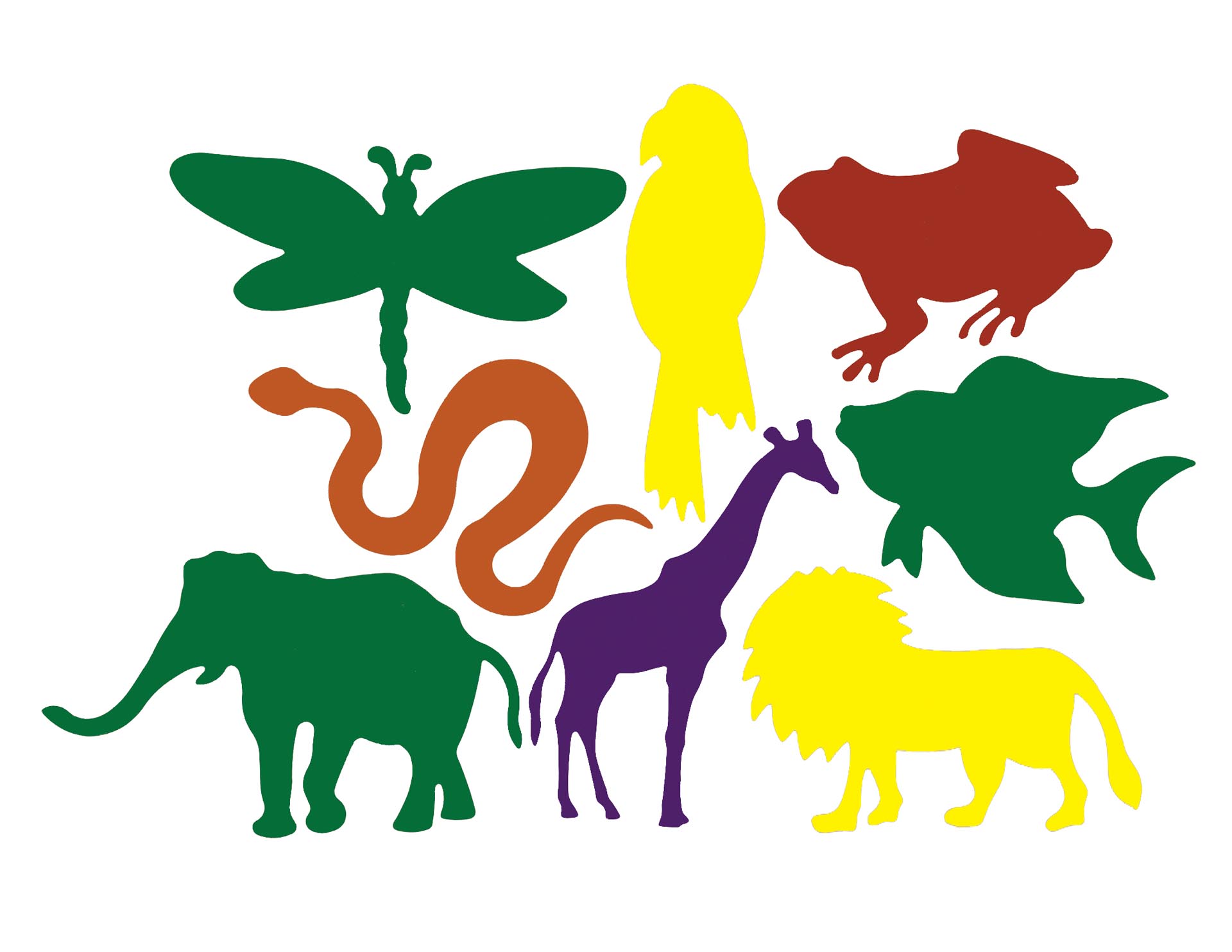 Set of 48, 6 of each shape and 5 assorted colours. Animals are 15 x 18 cm.