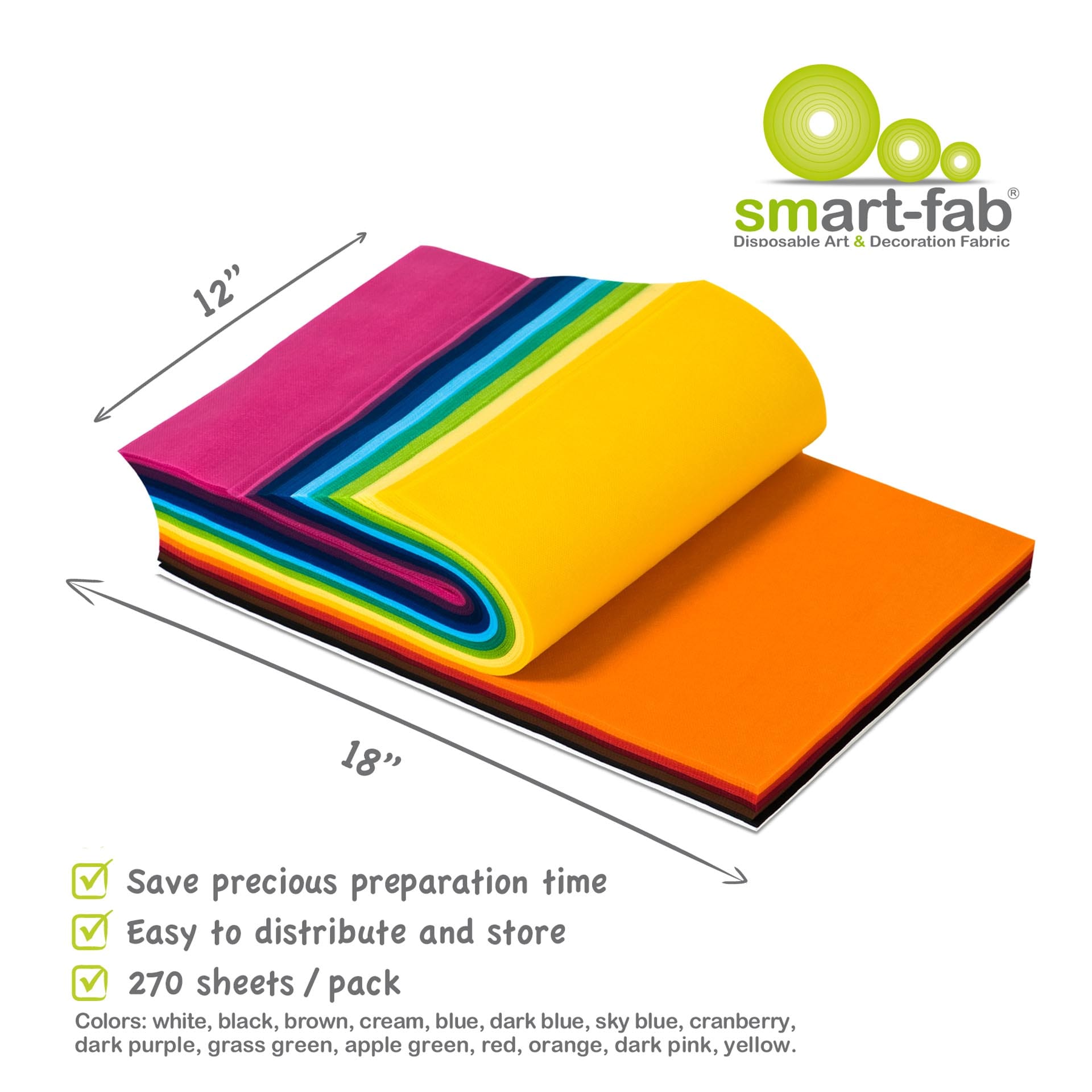 Set of 270 sheets in assorted colours: white, black, brown, cream, blue, dark blue, sky blue, dark purple, grass green, apple green, red, orange, dark pink, cranberry, yellow.