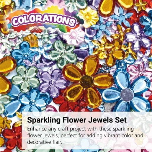 These Colorations® Sparkling Flower Jewels come with a wide variety of flower shapes in many colors, making them the best choice for making different DIY crafts. They are ideal for making a variety of DIY decorations, you can use them to enjoy an artistic creation, use when decorating photo frames, vases, cell phones, computers or making greeting cards or gift decorations, you can also use them for birthday parties, weddings and festivals. Use for crafting, counting, color recognition, and more at home and at school. This pack of 300 pieces comes in a resealable storage bag, making it easy to use and helps keep your crafting area clean. Pieces range from 0,5 cm to 4 cm , flowers come in assorted colors and styles with flat backs for easy gluing.