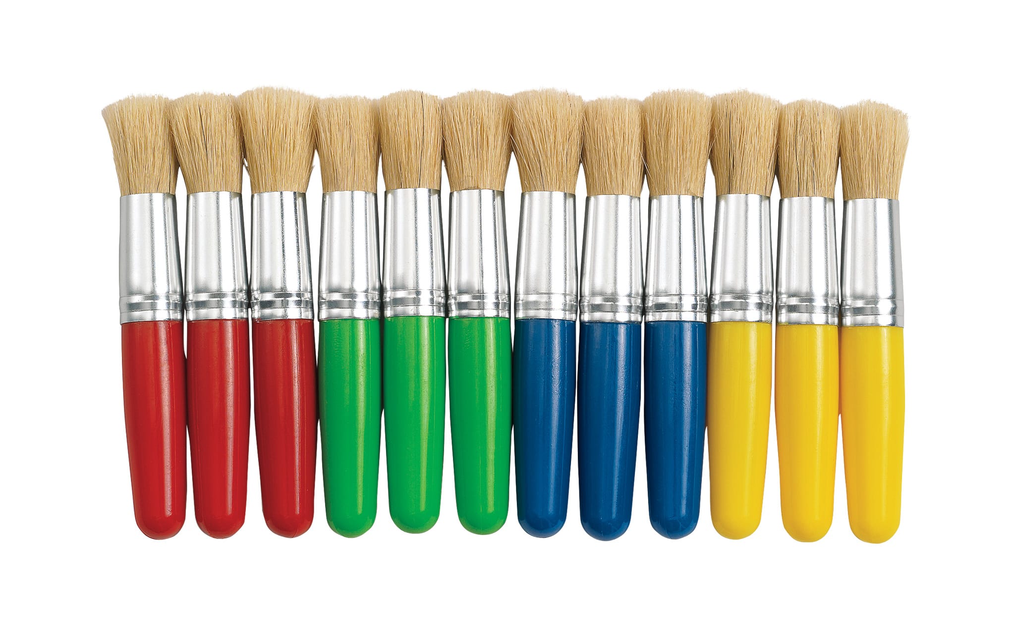 These chubby paintbrushes are perfect for little hands and are easy to use. They come in a set of 12 featuring 3 each of four colors; red, green, blue, and yellow.