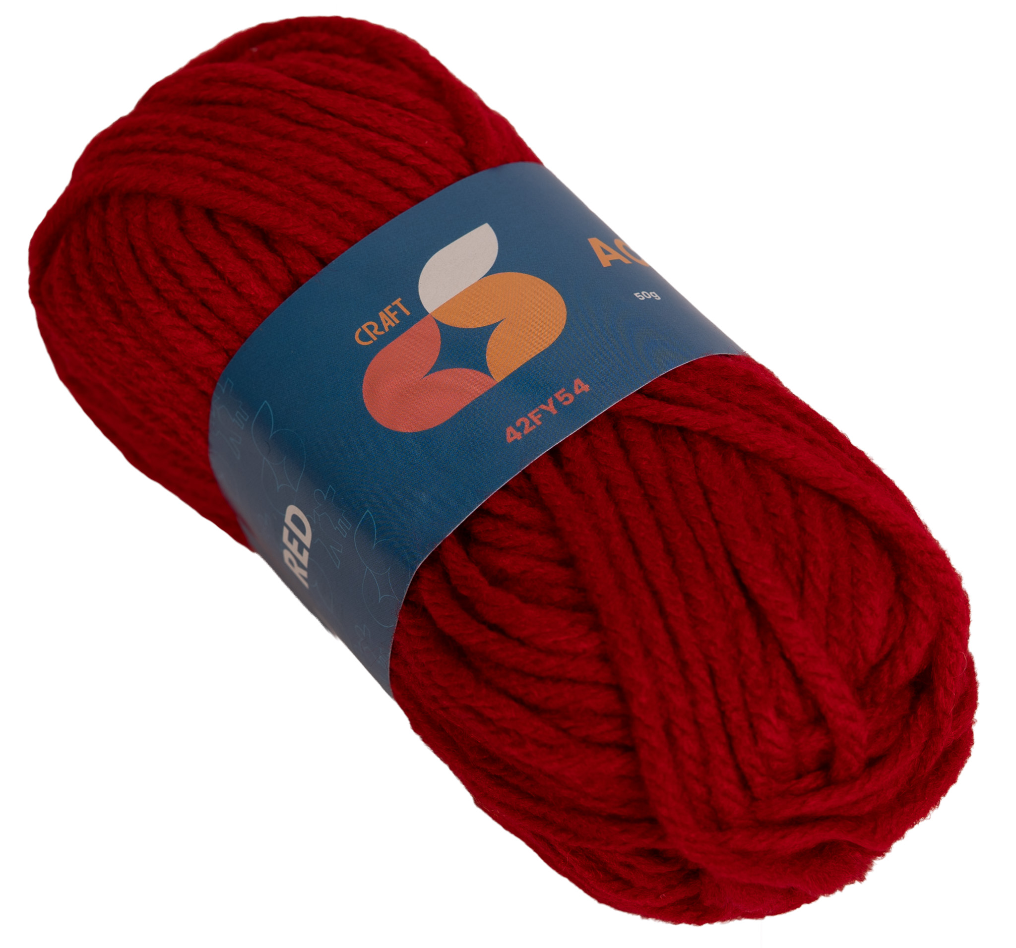 Thick Acrylic Yarn – 4 mm – 50 Grams– Red
