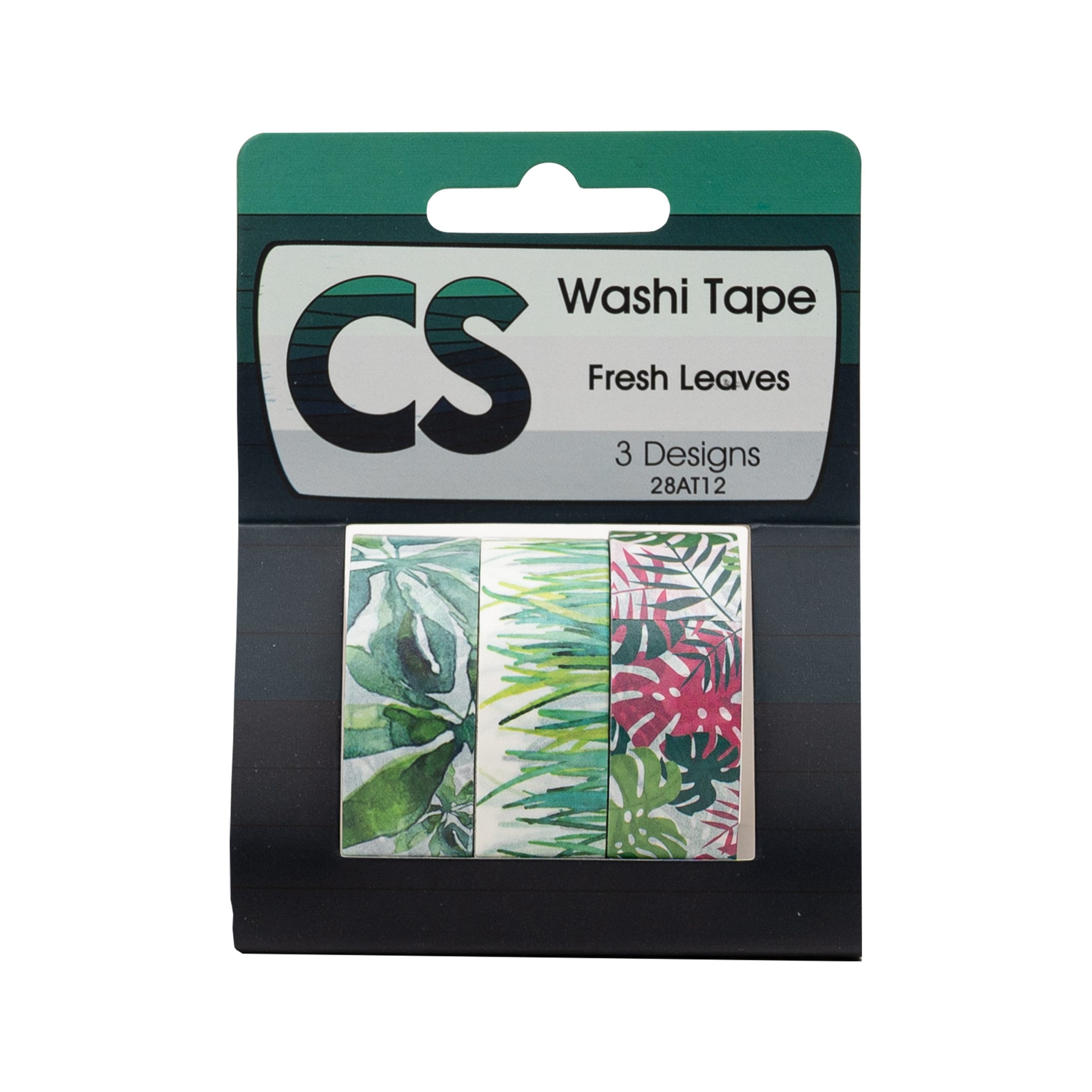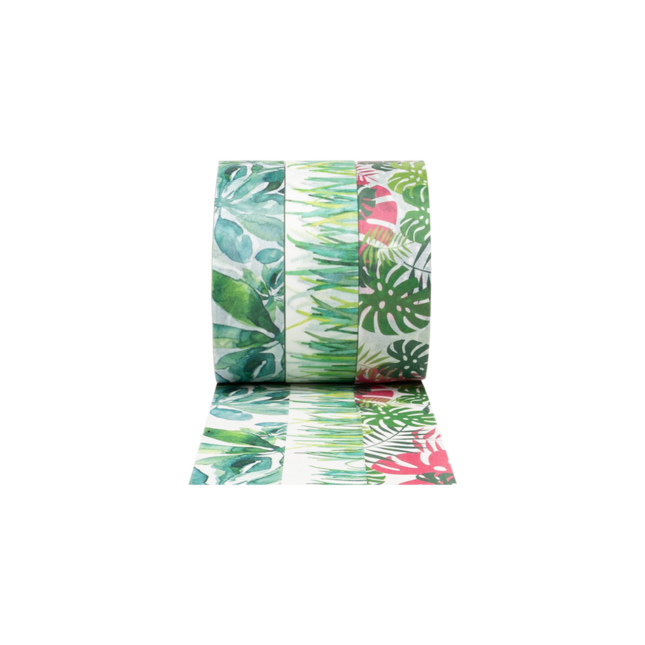 The set includes 3 washi tape rolls in various leaves designs. Each roll is 15 mm wide and 5 m long.