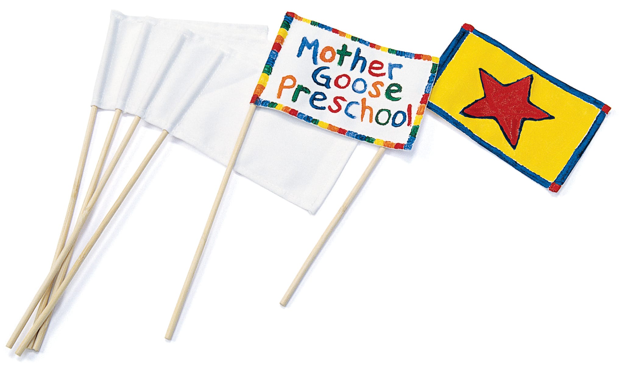 Set of 12 fl ags 10 cm W x 14.6 cm L mounted on 30.5 cm