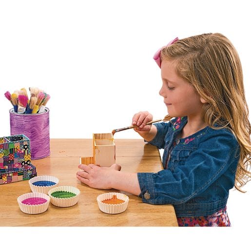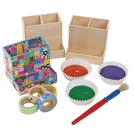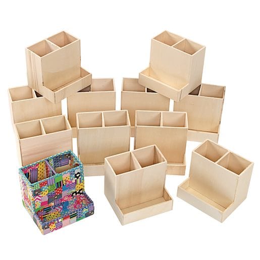 Colorations Wooden Desktop Organizer is a unique decorate your own craft. You get a set of 12 pre-assembled wooden desktop organizers. Each organizer measures 9 cm high by 10 cm wide by 8,5 cm in diameter. These unfinished wooden utensil organizers are ready for your designs! Use paints, markers, glitters, beads, or other collage materials. The possibilities for fun designs are endless. This is the perfect craft for the classroom, art class, summer camps, church groups, or birthday parties. Holds all types of writing utensils and art supplies. Each organizer is made of real wood and has 3 compartments. Features 2 large compartments for taller items and a small compartment in front for smaller items. All Colorations brand products are non-toxic and safe for children.