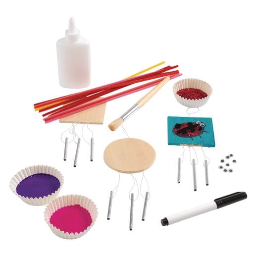Colorations Wooden Chimes are the perfect Spring or anytime DIY craft. You get a set of 12 wind chimes. Kit comes with 6 wooden circle designs and 6 square designs, each measuring 9 cm in diameter and 8,5 cm square respectively. Also included are strings and 36 metal chimes, each measuring 2 and 7,5 cm . These wooden wind chimes are a fun DIY craft both children and adults will love. Embellish with a variety of materials including paint, markers, and collage materials. This is the perfect craft for spring, summer, art class, summer camps, church groups, birthday parties, or a rainy day DIY creation. A cute way to decorate the home, garden, or porch. Made with real wood, metal, and durable string, Colorations chimes will hold up. All Colorations brand products are non-toxic and safe for children.